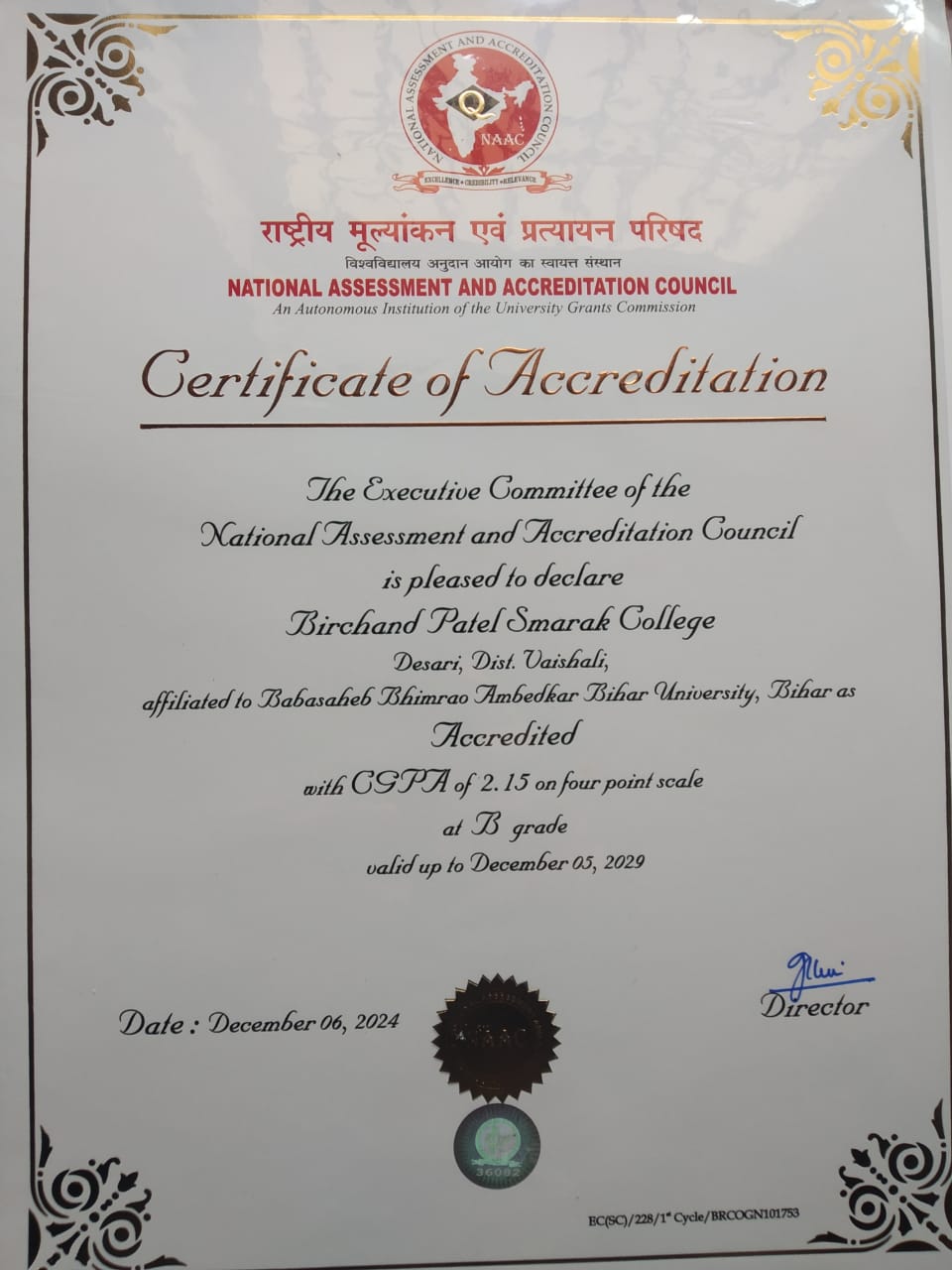 Birchand Patel Smarak Mahavidhyalaya, Desari, Vaishali